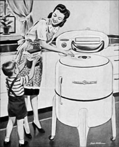 the kitchen floor, and mother would be so tired. It was hard to get past the washer into the house, and it all seemed so crowded and depressing. The only bright